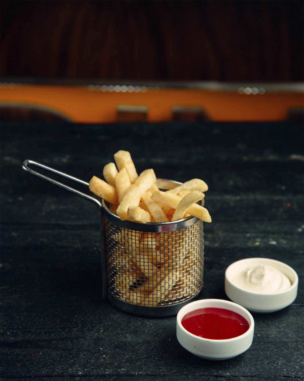 Thin strips of yam, deep fried and crispy, served with tomato ketchup.